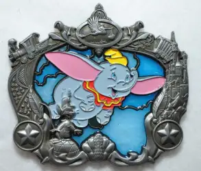 Dumbo The Flying Elephant is a Limited Edition (LE) 300 pin from the 3D Stained Glass Attractions pin series. It was originally released on , 2015 and was available from Walt Disney Imagineering .