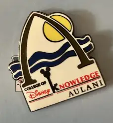 Aulani is an Open Edition pin from the Disney College Of Knowledge pin series. It was originally released in January, 2012 and was available from an Officially Licensed Disney trading pin vendor (see description for more information).