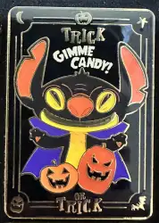 Stitch as Vampire Gimme Candy is an Open Edition pin from the Stitch Halloween Trick or Trick Mystery pin series. It was originally released on , 2023 and was available from Hong Kong Disneyland .