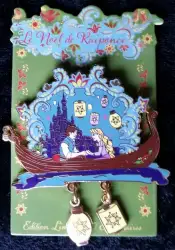 Rapunzel and Flynn Gondala is a Limited Edition (LE) 700 pin from the The Christmas of Rapunzel pin series. It was originally released on , 2013 and was available from Disneyland Resort Paris .