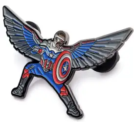 Falcon wielding Captain America Shield is a Limited Edition (LE) 25000 pin in the Falcon and the Winter Soldier 3-pin Set 3-pin set from the The Falcon and the Winter Soldier pin series. It was originally released on , 2021 and was available from an Officially Licensed Disney trading pin vendor (see description for more information).