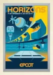 Horizons is a Limited Edition (LE) 250 pin from the EPCOT Poster Series pin series. It was originally released on , 2022 and was available from Walt Disney Imagineering .
