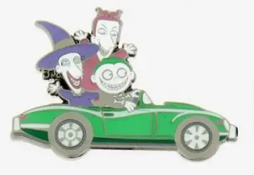 Lock, Shock, and Barrel in Green Car is an Open Edition pin from the BoxLunch - The Nightmare Before Christmas Retro Cars Mystery Collection pin series. It was originally released in September, 2023 and was available from Loungefly .