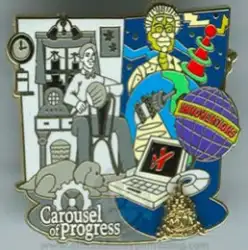 Then and Now - Carousel of Progress/ Innoventions is a Limited Edition (LE) 1000 pin from the Magical Milestones: A Pin Celebration - Pin Quest pin series. It was originally released on , 2005 and was available from Disneyland Resort .