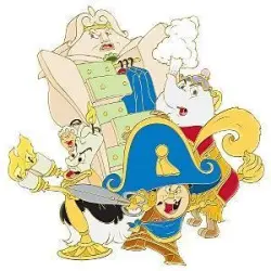 Pin features Lumiére , Cogsworth , Mrs. Potts and Plumette / Fifi / Babette from Beauty and the Beast