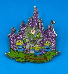 Buzz and Little Green Men (Aliens) is a Limited Edition (LE) 1000 pin from the Hong Kong Disneyland 10th Anniversary pin series. It was originally released on , 2015 and was available from Hong Kong Disneyland .
