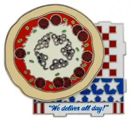 Captain America Shield Pizza - "We Deliver All Day!" is a Limited Release pin from the Marvel Avengers pin series. It was originally released on , 2023 and was available from Multiple Sources (WDW, DLR, etc.).