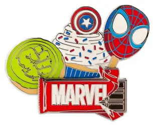 Marvel Avengers Sweets - Hulk Donut, Captain America Cupcake, Spiderman Ice Cream is a Limited Release pin. It was originally released on , 2023 and was available from Multiple Sources (WDW, DLR, etc.).