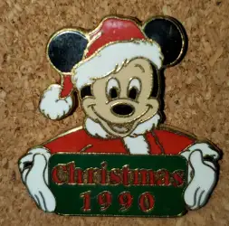 Santa Mickey Mouse Christmas 1990 is an Open Edition pin from the Disney Store Annual Dated Christmas pin series. It was originally released on , 1990 and was available from Disney Store US .