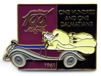 Cruella De Vil Driving her Car - 101 Dalmatians - 1961 - Slider is a Limited Edition (LE) 2400 pin from the Mickey & Pals - 100 Years of Magic pin series. It was originally released in January, 2001 and was available from an Officially Licensed Disney trading pin vendor (see description for more information).