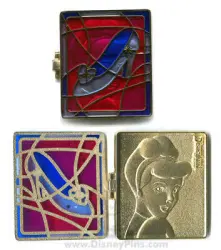 Cinderella is an Open Edition pin from the Hinged Character Stained Glass pin series. It was originally released on , 2006 and was available from Disneyland Resort .