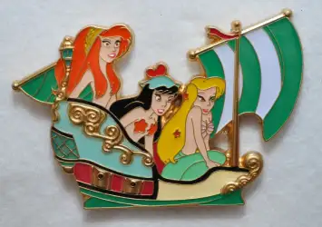 Mermaids is a Limited Edition (LE) 300 pin from the Peter Pan's Flight Boats pin series. It was originally released on , 2015 and was available from Walt Disney Imagineering .