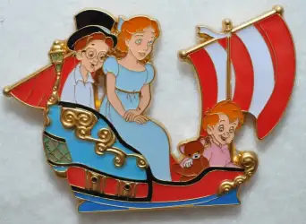 Wendy, John and Michael is a Limited Edition (LE) 300 pin from the Peter Pan's Flight Boats pin series. It was originally released on , 2015 and was available from Multiple Sources (WDW, DLR, etc.).