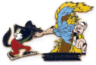 Fifer Pig as the Big Bad Wolf Blows His House Down is a Limited Edition (LE) 1500 pin from the Three Little Pigs 70th Anniversary pin series. It was originally released on , 2003 and was available from Walt Disney World .