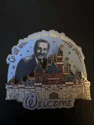 To All Who Come To This Happy Place... Welcome - Walt and Sleeping Beauty Castle is a Limited Edition (LE) 500 pin. It was originally released in January, 2009 and was available from Disneyland Resort .