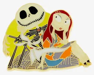 Pin features Jack Skellington and Sally from The Nightmare Before Christmas