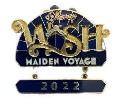 DCL Wish Maiden Voyage 2022 is a Limited Edition (LE) 2000 pin from the Disney Wish Cruise Ship pin series. It was originally released in January, 2022 and was available from Disney Cruise Line .