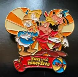 Pin features Donald Duck , Goofy and Mickey Mouse from Fun and Fancy Free