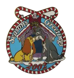 Seasons Greetings 2002 - Lady and the Tramp is a Limited Release pin from the DLR Cast Member Holiday Work Gifts - Christmas pin series. It was originally released on , 2002 and was available from Theme Park Cast Member Exclusive .