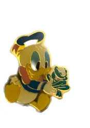 Baby Donald holding a frog is a pin. It was available from an Officially Licensed Disney trading pin vendor (see description for more information).