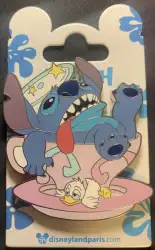 Stitch in Teacup is an Open Edition pin from the Stitch as characters pin series. It was originally released on , 2023 and was available from Disneyland Resort Paris .