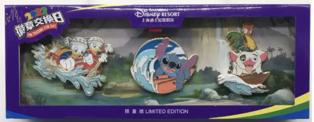 Rafting and Surfing Boxed Set is a Limited Edition (LE) 500 3-pin set from the Pin Trading Fun Day 2022 pin series. It was originally released on , 2022 and was available from Shanghai Disney Resort .
