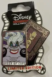 Ursula Queen of Cups is a Limited Edition (LE) 400 pin from the Once Upon A Nightmare Pin Trading Event - Villain Tarot Cards pin series. It was originally released on , 2023 and was available from Disney Studio Store Hollywood / Soda Fountain .