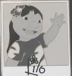 Lilo is a Limited Edition (LE) 250 pin from the Characters and Cameras Mystery pin series. It was originally released on , 2014 and was available from Multiple Sources (WDW, DLR, etc.).