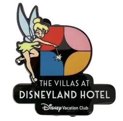 Tinker Bell with Villas Logo is an Open Edition pin from the The Villas at Disneyland Hotel pin series. It was originally released on , 2023 and was available from Disney Vacation Club .