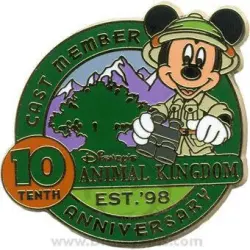 10th Anniversary Cast Exclusive - Mickey Mouse is a Limited Release pin from the Disney's Animal Kingdom Anniversaries pin series. It was originally released on , 2008 and was available from Theme Park Cast Member Exclusive .