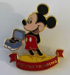 Mickey Holding Pin Box - I Heart/Love Pin Trading is a pin from the Disney Catalog pin series. It was available from an Officially Licensed Disney trading pin vendor (see description for more information).