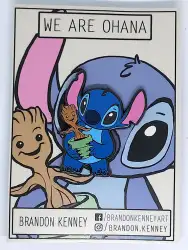 "We Are Ohana" is a Limited Edition (LE) pin from the Fantasy Pin Series: Brandon Kenney pin series. It is an Unlicensed (Fantasy) pin, so therefore it is not allowed to be traded in the Disney Parks.