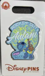 Stitch Rockin' Out Aulani is an Open Edition pin from the Aulani Resort & Spa pin series. It was originally released in September, 2023 and was available from Multiple Sources (WDW, DLR, etc.).