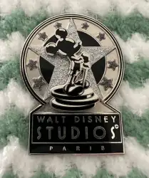 Mickey Statue Logo (Silver Glitter Stars Variant) is an Open Edition pin from the Walt Disney Studios Park pin series. It was originally released on , 2004 and was available from Disneyland Resort Paris .