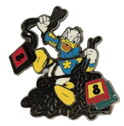 Angry Donald Tangled in 8-Track Tapes is a Limited Release pin from the 1970s Mickey Mouse and Friends Mystery Collection pin series. It was originally released on , 2013 and was available from Walt Disney World .