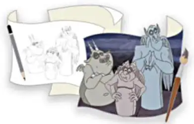 Victor, Hugo & Laverne is a Limited Edition (LE) 300 pin from the Off the Page Series pin series. It was originally released on , 2023 and was available from Walt Disney Imagineering .