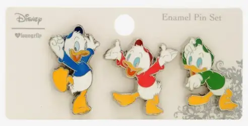 Huey, Dewey, and Louie 3-Pin Set is an Open Edition 3-pin set from the BoxLunch - Disney pin series. It was originally released on , 2018 and was available from Loungefly .