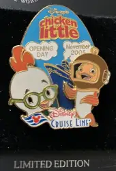 Opening Day is a Limited Edition (LE) 750 pin from the Chicken Little pin series. It was originally released on , 2005 and was available from Disney Cruise Line .