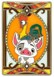 Pua and Hei Hei is a Limited Edition (LE) 300 pin from the Pink A La Mode (PALM) - Sidekicks Stained Glass Series pin series. It was originally released on , 2023 and was available from an Officially Licensed Disney trading pin vendor (see description for more information).