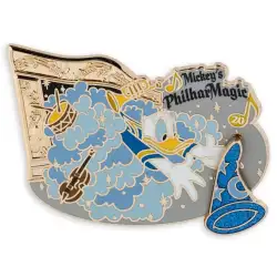 Mickey's PhilharMagic 20th Anniversary - Donald Duck and Sorcerer Hat Spinner is a Limited Edition (LE) 2500 pin from the Attraction Anniversaries pin series. It was originally released on , 2023 and was available from Multiple Sources (WDW, DLR, etc.).