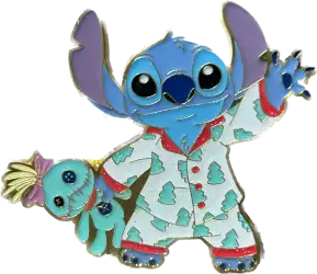 Stitch holding Scrump is an Open Edition pin from the Hot Topic - Lilo & Stitch Holiday Morning Mystery Collection pin series. It was originally released on , 2023 and was available from Loungefly .