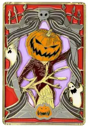 The Pumpkin King is a Limited Edition (LE) 100 pin from the Pink A La Mode (PALM) - The Nightmare Before Christmas Stained Glass Series pin series. It was originally released on , 2023 and was available from an Officially Licensed Disney trading pin vendor (see description for more information).
