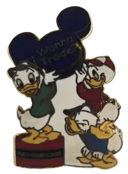 Wanna Trade? - Huey, Dewey, and Louie is a Limited Edition (LE) 2500 pin from the Mickey's Trade Tour pin series. It was originally released in January, 2002 and was available from Walt Disney World .