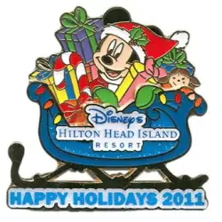 Hilton Head Island - Mickey Mouse is a Limited Edition (LE) 500 pin from the Resort Holiday Collection 2011: Sleighs pin series. It was originally released on , 2011 and was available from Disney Vacation Club .