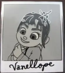 Vanellope is a Limited Edition (LE) 250 pin from the Characters and Cameras Mystery pin series. It was originally released on , 2014 and was available from Multiple Sources (WDW, DLR, etc.).