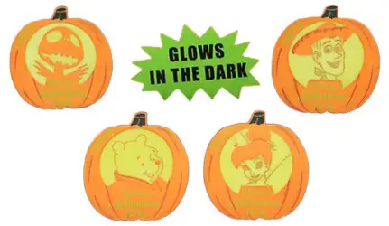 Metal Pumpkin Pin Set - Full Set is a Limited Edition (LE) 1000 4-pin set from the Mickey's Halloween Party 2013 pin series. It was originally released on , 2013 and was available from Disneyland Resort .