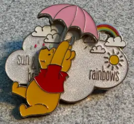 Sun & Rain Brings Rainbows is an Open Edition pin from the The Many Adventures of Winnie the Pooh pin series. It was originally released on , 2019 and was available from Multiple Sources (WDW, DLR, etc.).