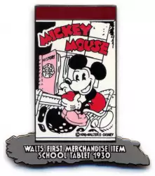 #5 Walt's First Merchandise - School Tablet 1930 is a Limited Release pin from the Countdown to 100 Years of Magic pin series. It was originally released on , 2001 and was available from Walt Disney World .