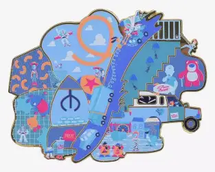 Toy Story is an Open Edition pin from the BoxLunch - Pixar Scenic Collages pin series. It was originally released on , 2023 and was available from an Officially Licensed Disney trading pin vendor (see description for more information).
