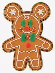 Mickey Gingerbread is an Open Edition pin in the Mickey & Minnie Mouse Gingerbread Pin Set 2-pin set from the BoxLunch - Holiday pin series. It was originally released on , 2023 and was available from an Officially Licensed Disney trading pin vendor (see description for more information).
